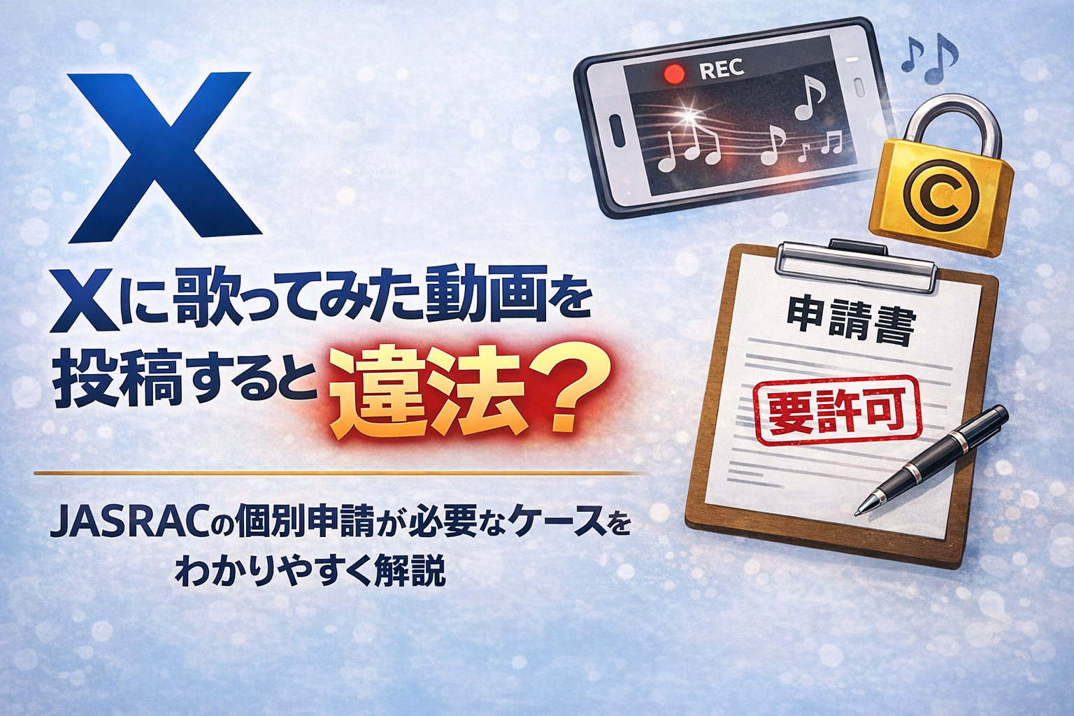 Xに歌ってみた動画を投稿すると違法?JASRACの個別申請が必要なケースをわかりやすく解説